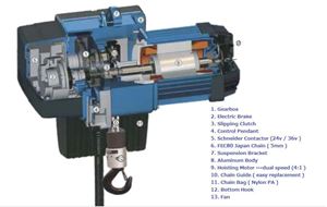 بالابر زنجیری برای کارگاه تعمیراتی و جرثقیل منوریل با گروه کاری کم کار استفاده میشود که با توجه به درخواست مشتری تهیه میگردد .